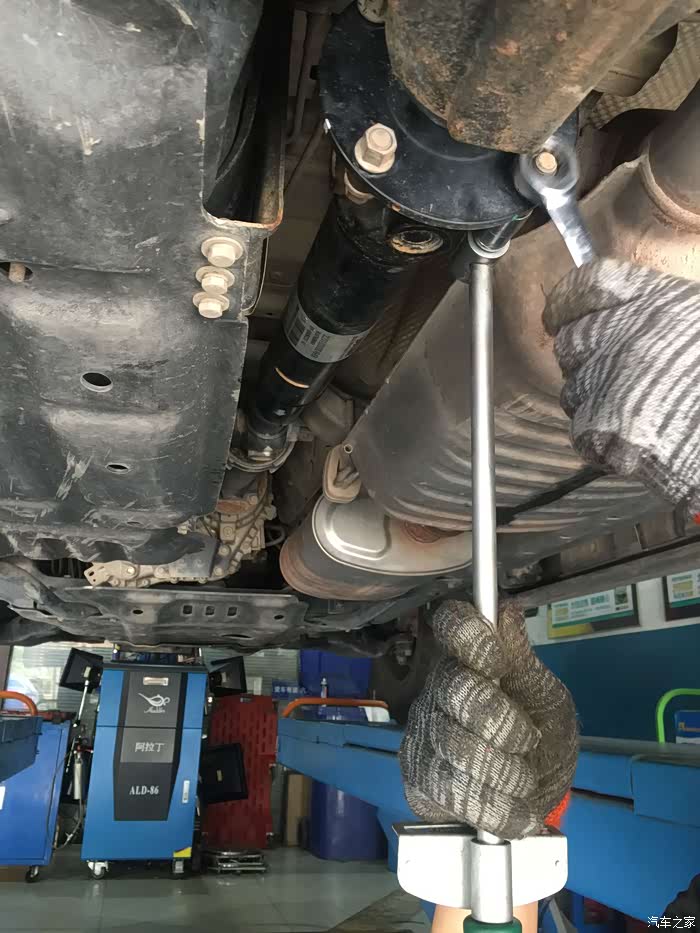 开始拆卸传动轴,前扭矩扳手,后套头,开整,图片中的也就是这家店面的大师傅,一般有货我都找他。