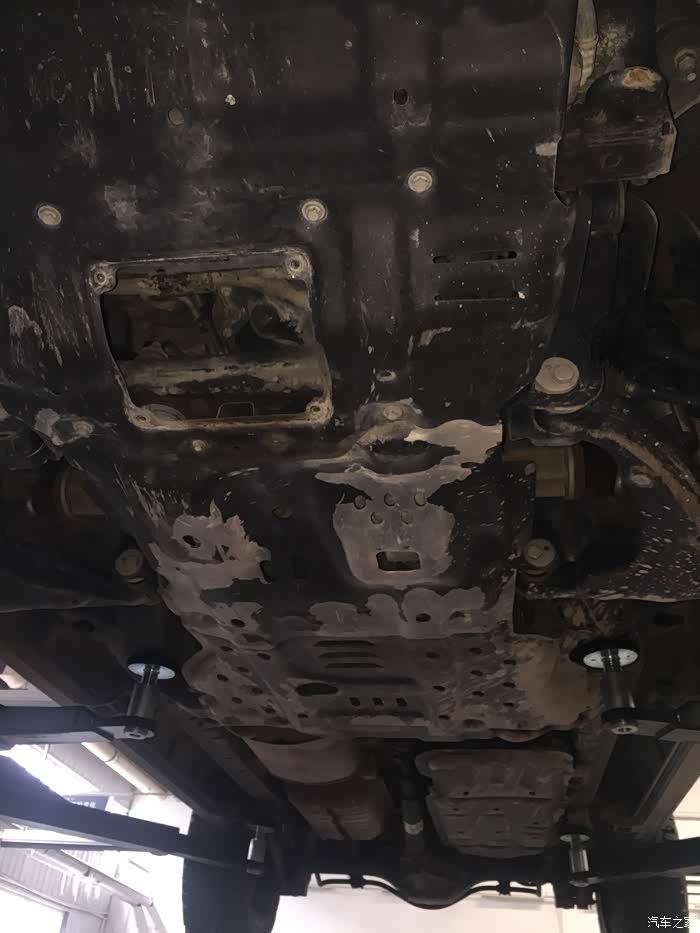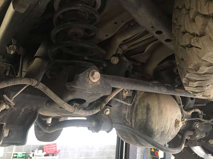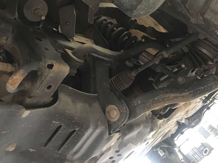 举升机起来在上保险后开始习惯性的自主检查,毕竟底盘是与地面接触的最多也是日常最难以检查的部位。