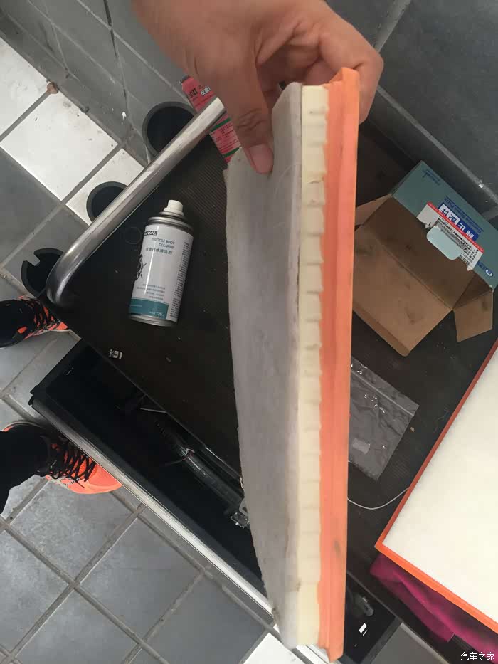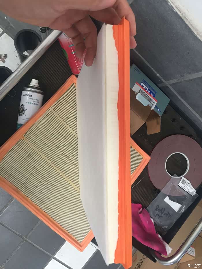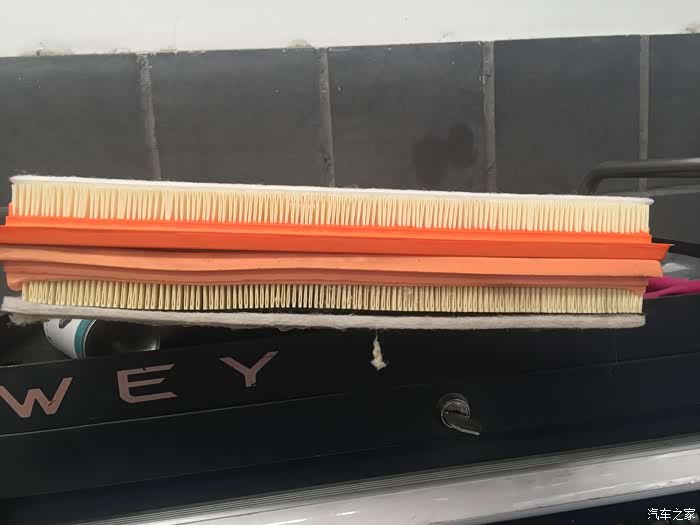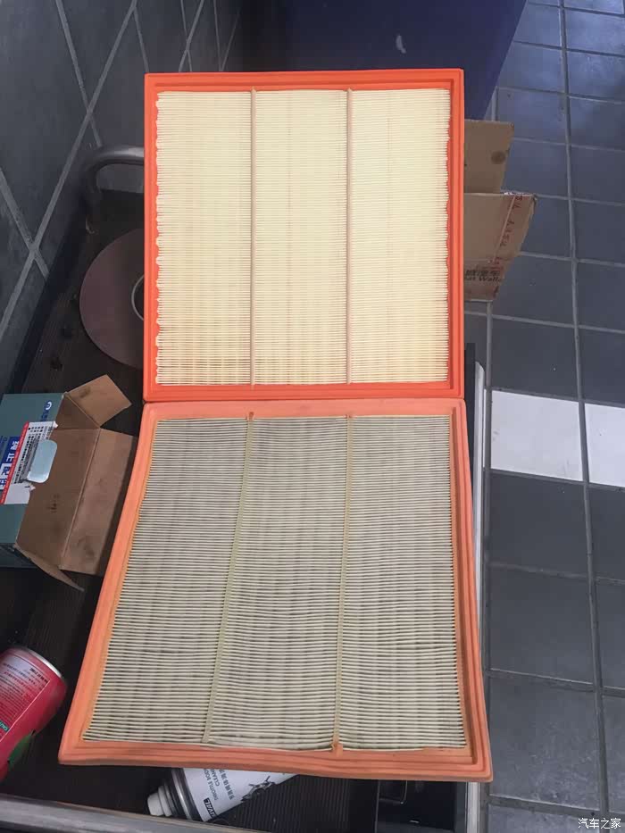 上一次自带的空气滤芯,在维修师傅的提示下我做了个简单对比。