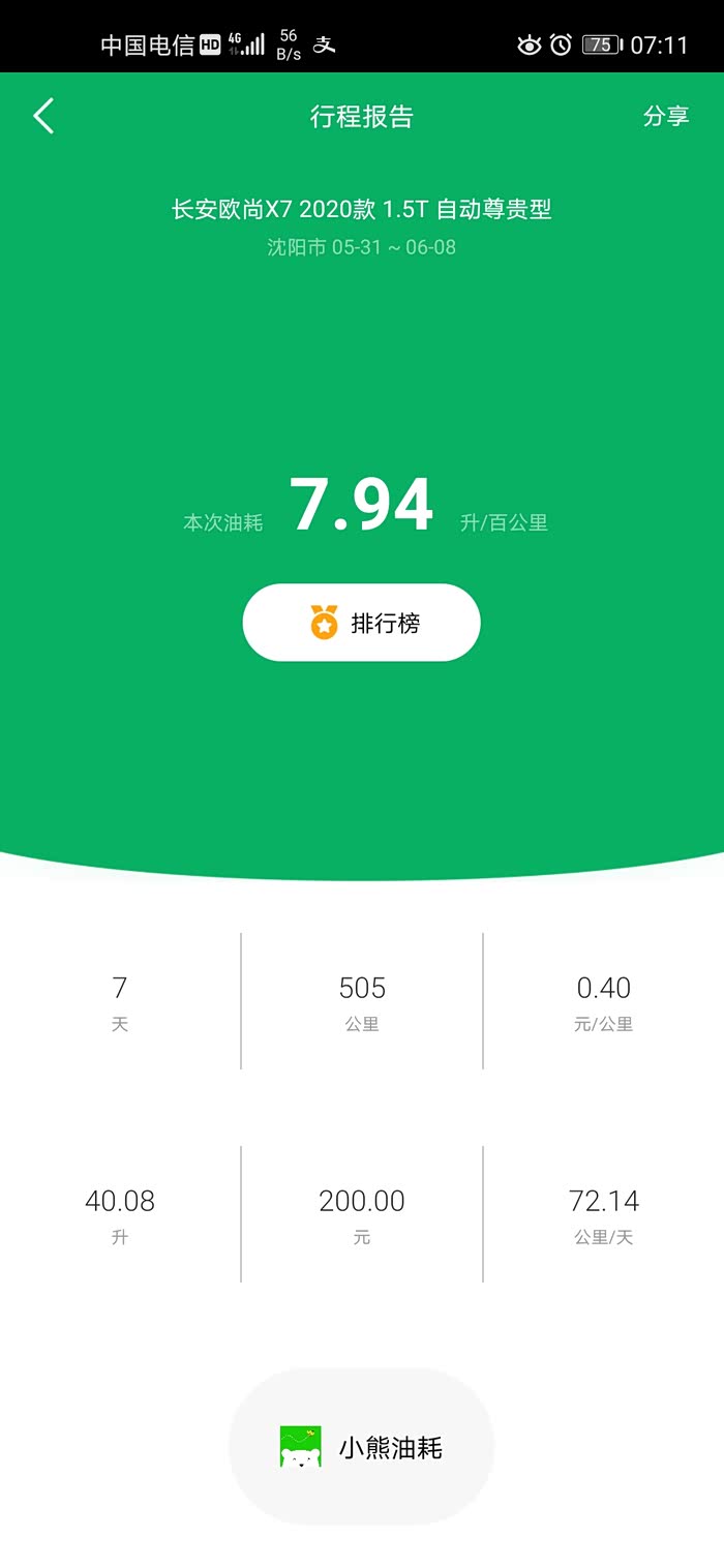 提车以来油耗数据