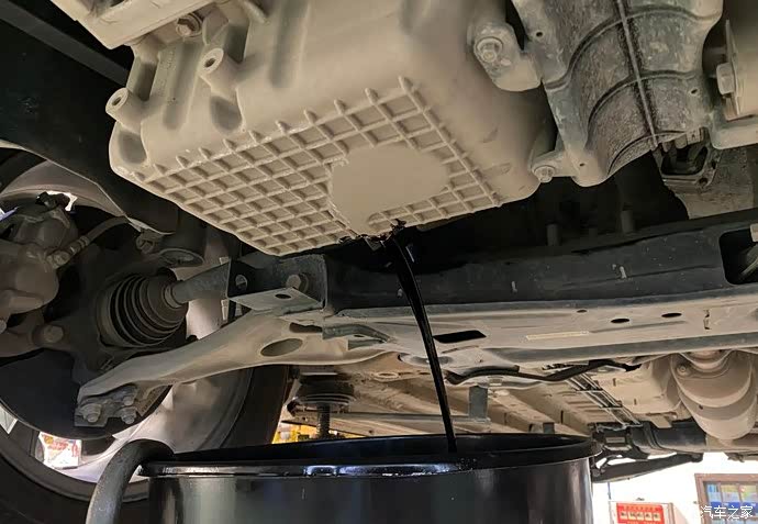 换机油,黑色的液体泵流而下。准备更换新的机油……