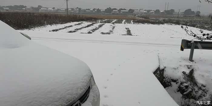 下雪天乡下很静谧,马路车很少