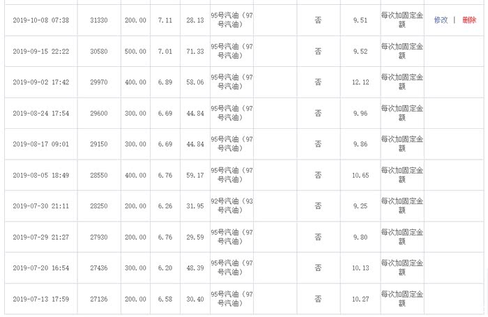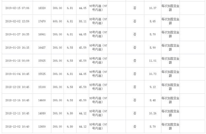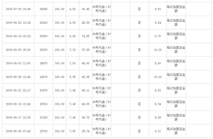 以下是近一年多油耗实记,基本上每次都是亮灯加200或300,手工登记,有时候不是亮灯加油或没有记录的话会把两次加油记录合在一起登记,可能两次油价不一致会有些许误差,但可忽略不计。一般加95,偶尔92,主要是因为前一年烧92亮灯,混合气过浓,不想折腾,直接95了事,再没亮过灯。
