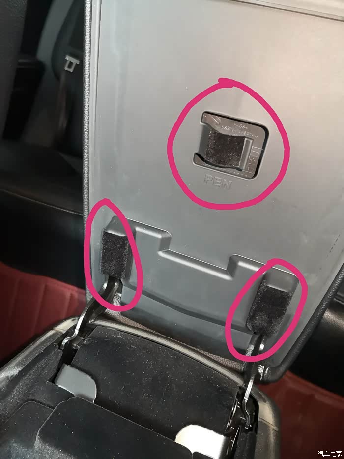 捣鼓了好一会儿发现只要有硬塑料接触的地方都给贴上,也是昨天闲来无事突发奇想试试的态度。想到还有多余的毛毡,贴好了过后又跑了一圈。现在是不管静止还是跑起来,手搭在上面或者用点力压都没有那种烦人的异响了。贴好了过后发现扶手箱紧实些了,不像以前手一搭上去感觉松垮垮那种。效果还是可以nice。这个毛毡用处还挺多,顺便把其它地方也贴贴。直接上图