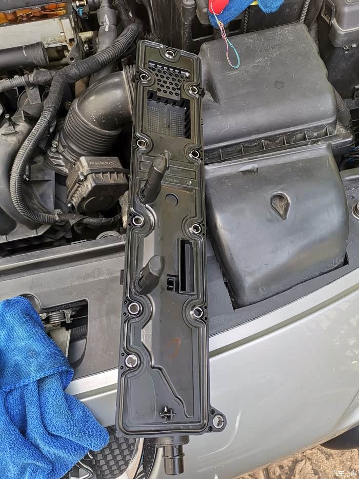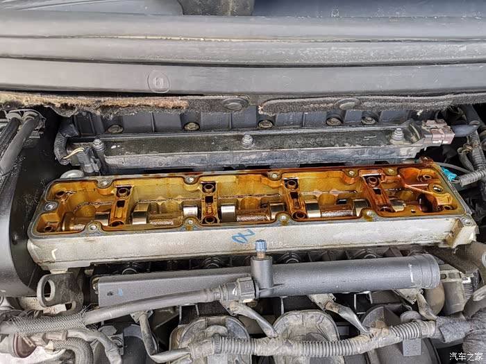 安装完清理了一下,但没有升降机,没办法清理发动机底部,不知道怎么判断到底是气门盖垫还是曲轴油封呢?