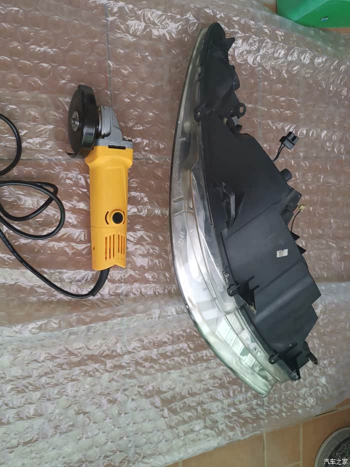 上次追尾,一个大灯撞坏了,换了一个新的。但另外一个实在太旧了,想自己换个灯罩。