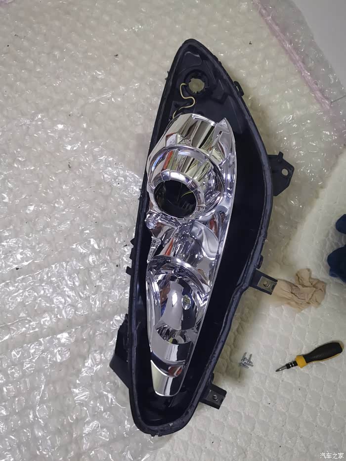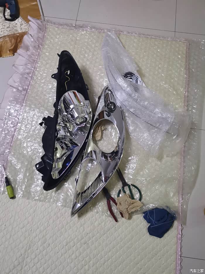 大灯拿回家,慢慢打开,用了最笨的办法,暴力打开,原厂的冷胶太难拆: