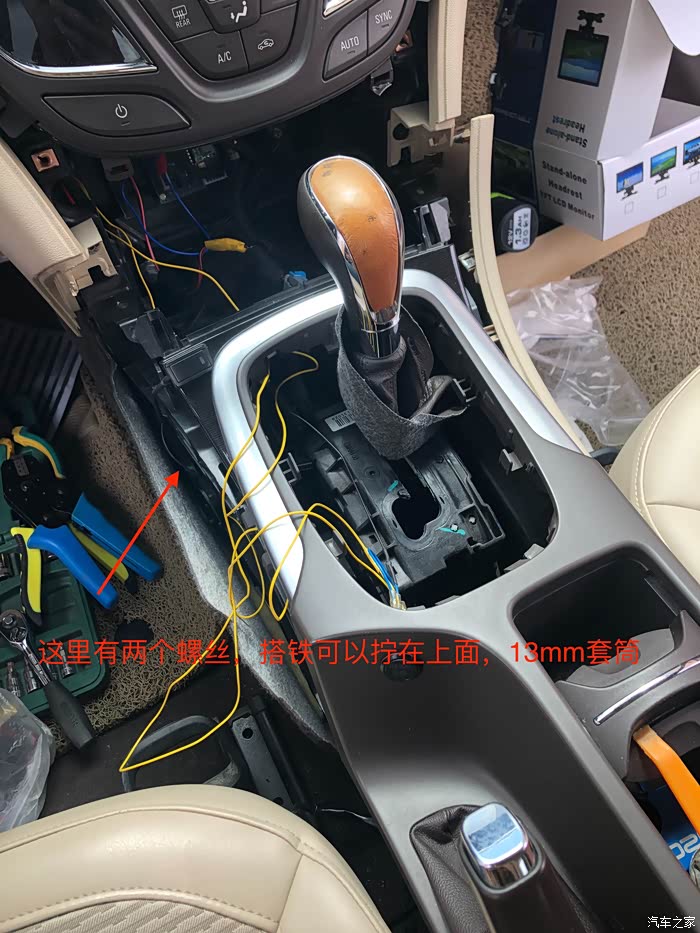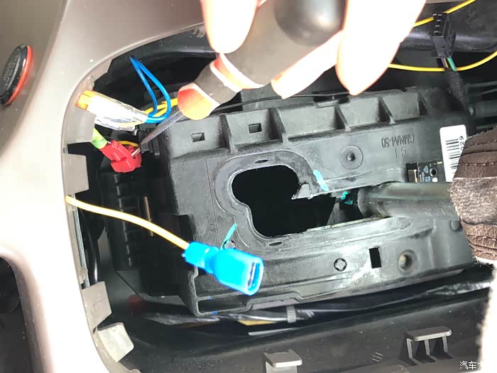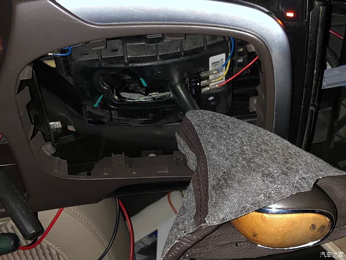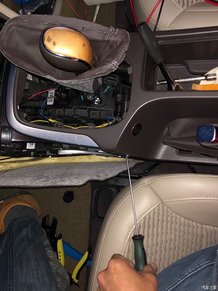 接下来用螺丝刀把地面控制台副驾驶侧固定线束的卡子撬下来大概个三个,方便抬起控制台,这里我没照照片。