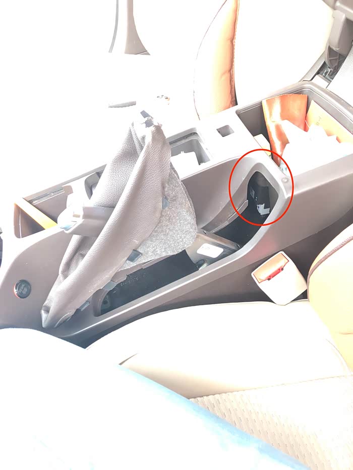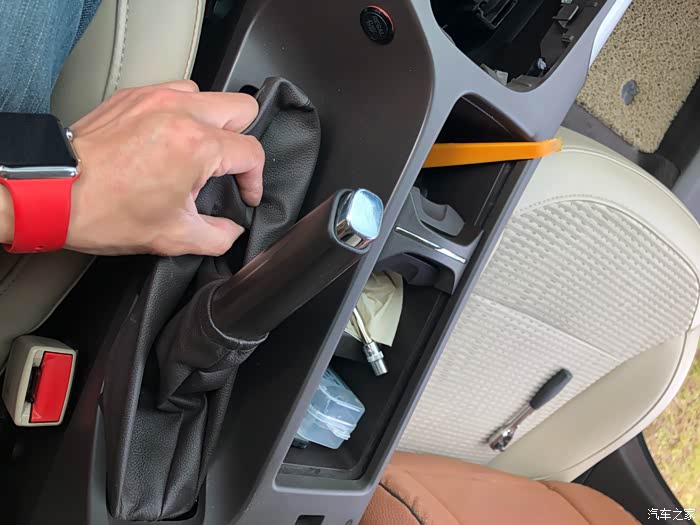 手刹这里的套还是要打开的,用手捏住这里往上稍用力就提出来了