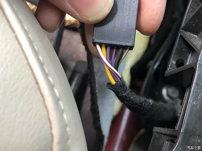 第一步就是找线了,黑色搭铁不用多说了,随便找个螺丝拧上就行,还有一根紫白线,看下面照片