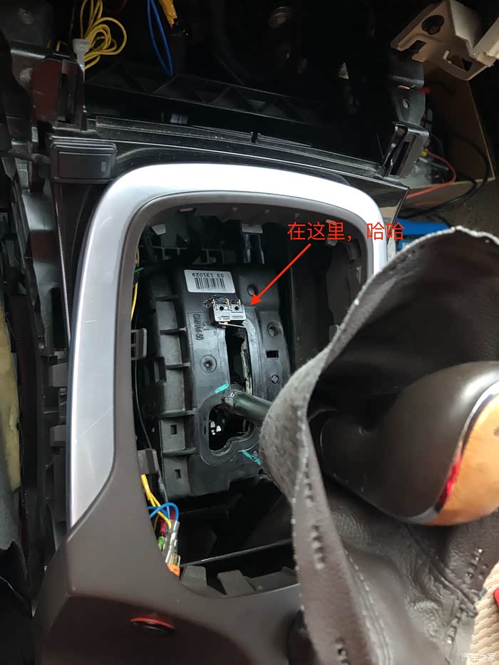 用AB胶把微动开关粘在这里,这样当档杆推到P位置时微动开关就被碰触动作了,注意不要用3M胶,测试了,粘不住