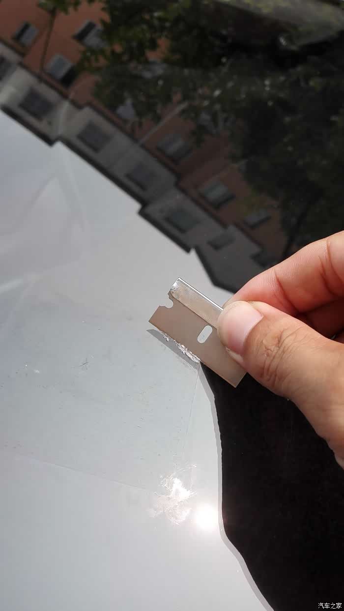 时间到。将注射器和注液头取出,修复液就已经固化了。用刀片将定位贴和固化的胶头切掉。再在已被修复的“牛眼”位置滴上1-2滴修复液,然后覆盖上固化膜。在太阳底下继续暴晒20分钟。