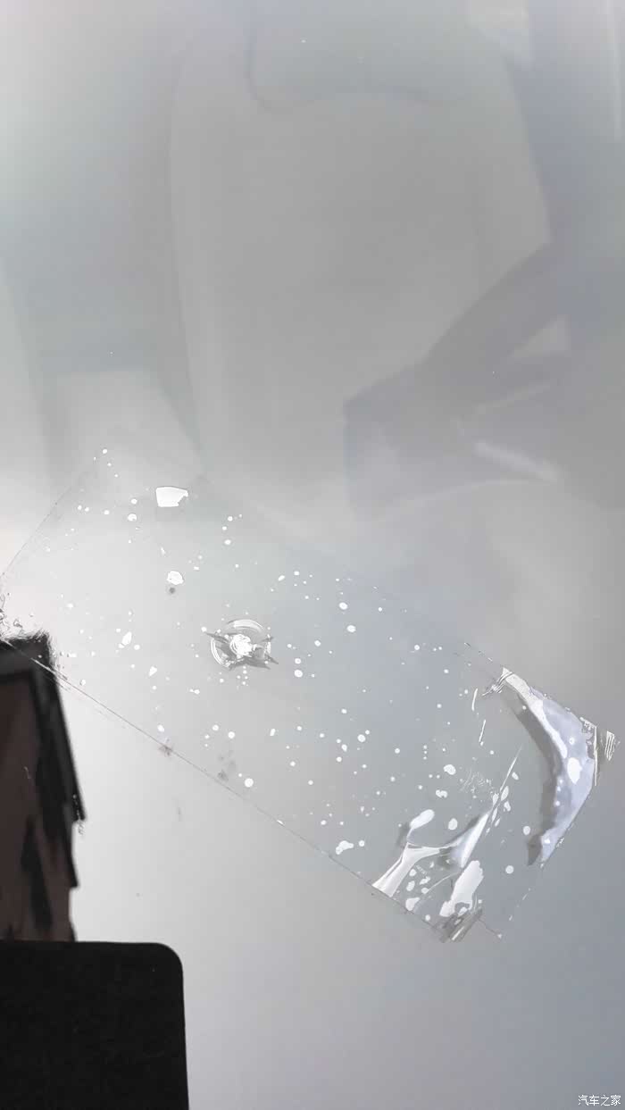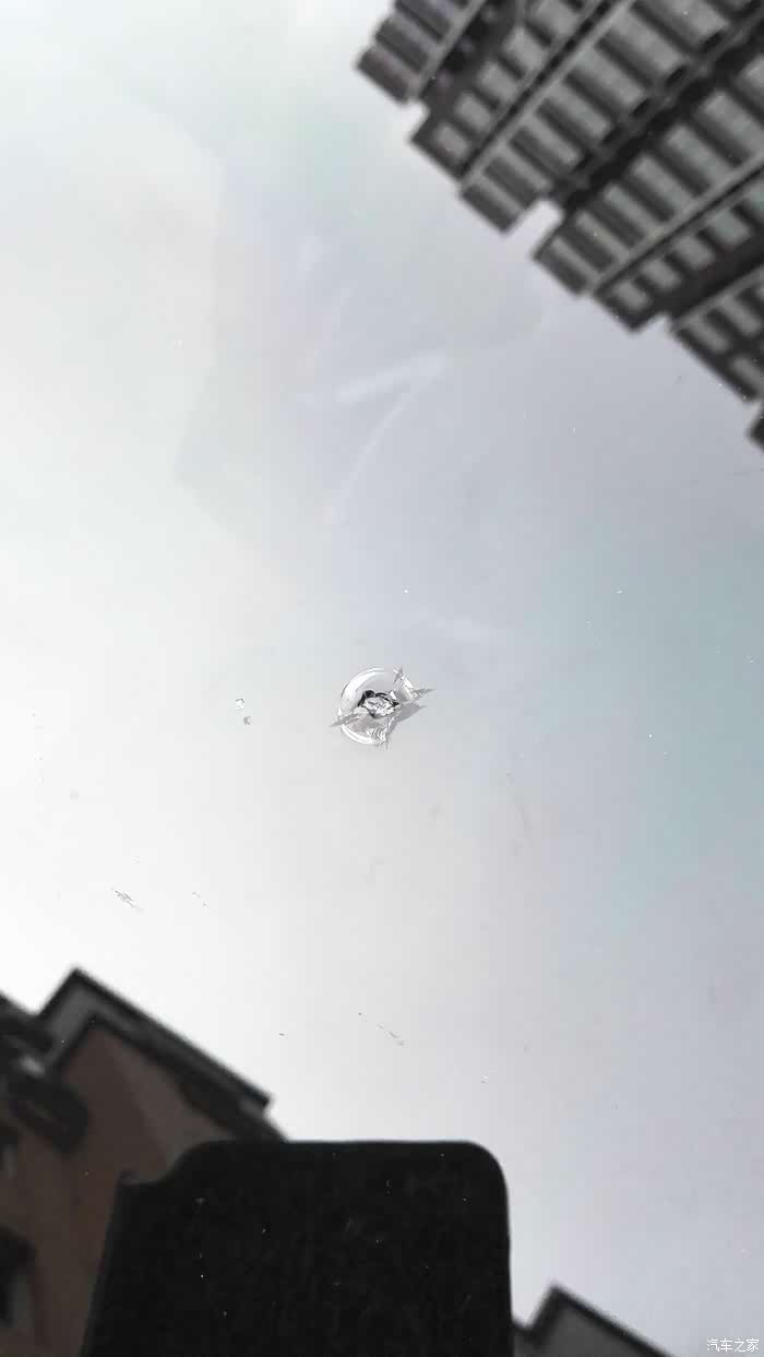 被石子击中的前档玻璃,一个直径约8-9毫米的小坑。这种坑俗称“牛眼”。