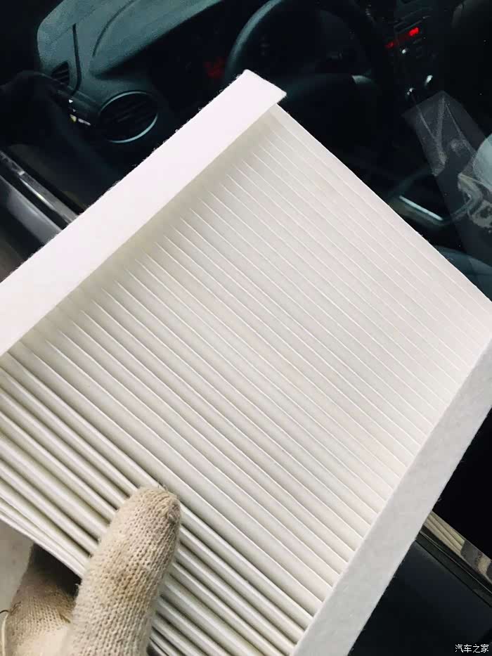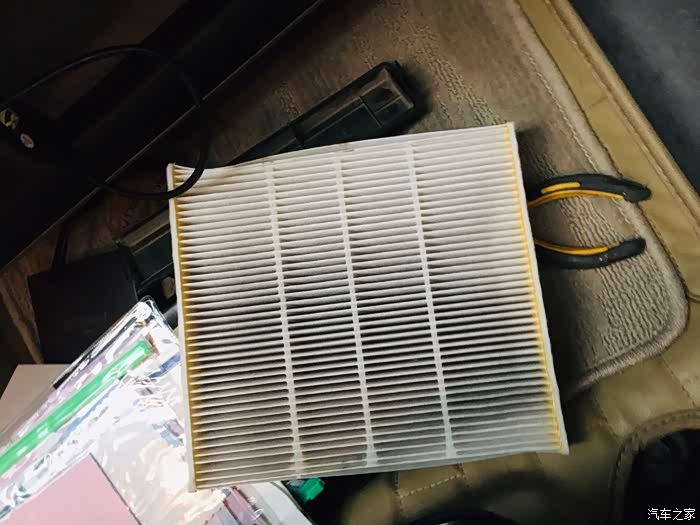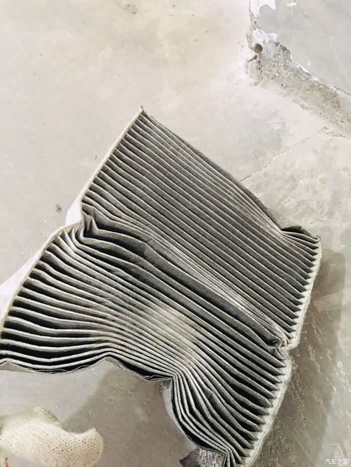 丰田空调滤芯的设计,就容易的多,位于手套箱下方,弯腰就能看见,查看滤芯的情况,还不错,吹掉灰尘继续使用。