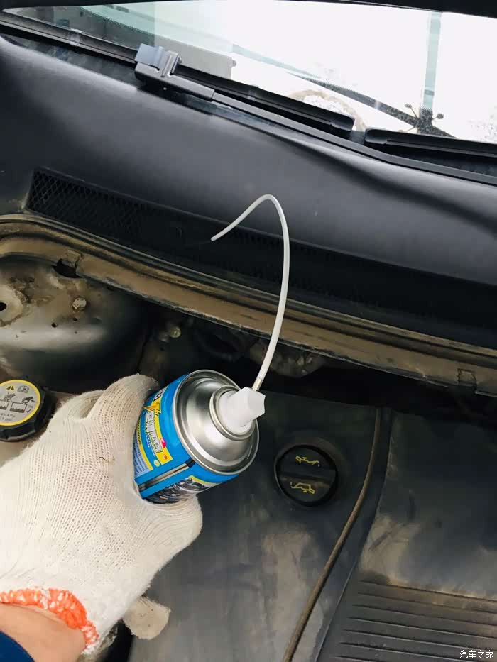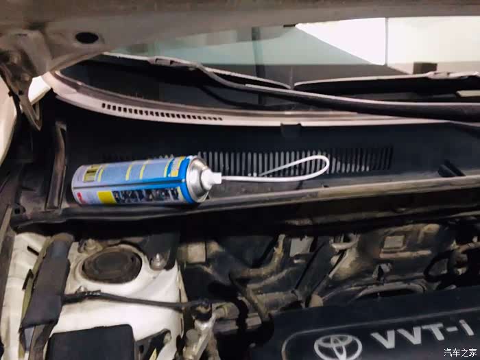 剩余一半清洗剂,找到rav4外进风口,位置位于挡风玻璃右前,有显眼的进风格栅,重复福克斯的清洗流程。