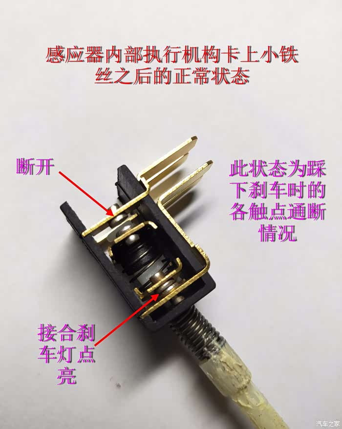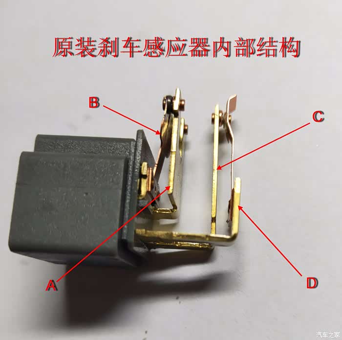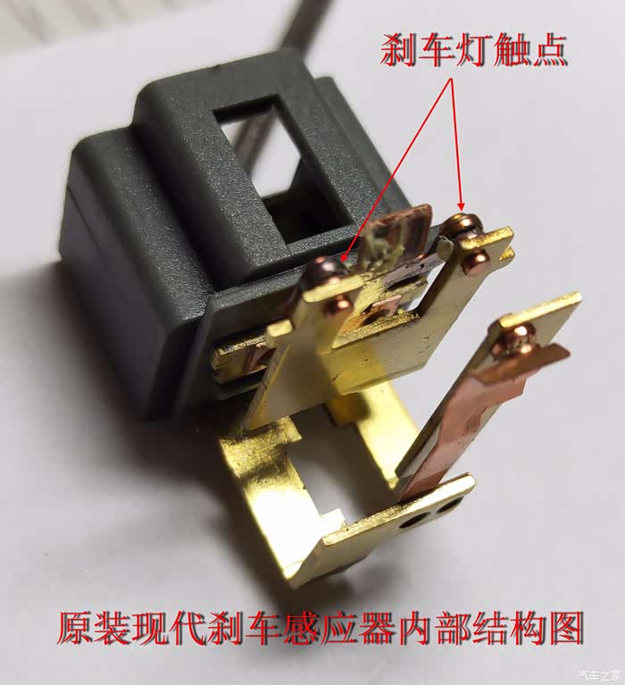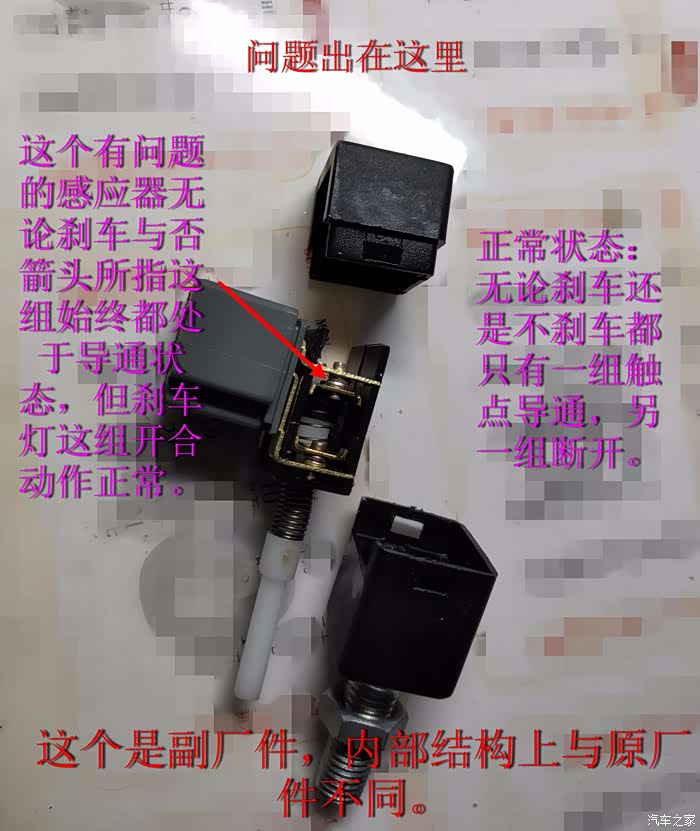 注:上面图片有一个是原厂的感应器,有一个是副厂的感应器。车上原来的原厂的感应器有时候刹车灯不亮,就去换了一个副厂的。用一段时间后结果导致排挡杆锁死故障发生。
