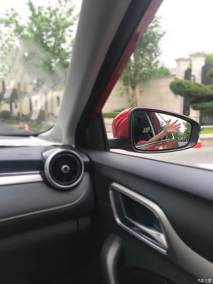 挺喜欢拍后视镜,还能看到这个运动出风口,要提一下这车的内饰颜值也是非常在线,越级配置的感觉。