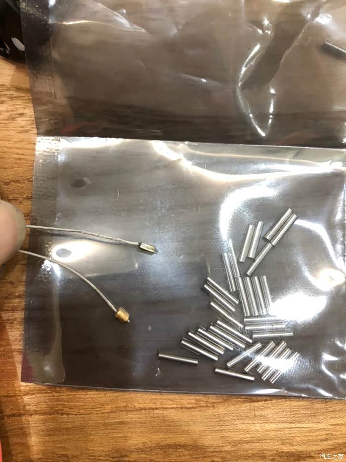 在逛遍了西安几乎所有鱼具市场之后,只买到不带胶的钢丝线,回来一试,不停的打结。果断继续淘,结果淘到上面的包胶钢丝鱼线,钓海鲨用的,顺便买的绑鱼钩用的铜管,自己试着加工了一下效果不错。