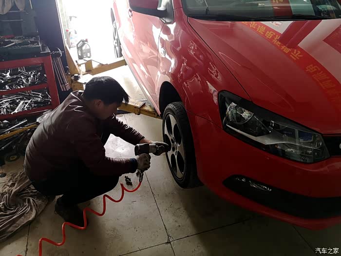 车子开进工位内准备更换轮胎了。