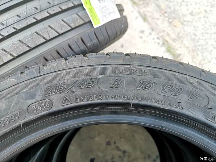215是轮胎宽度,45是胎肩厚度百分比,16是轮毂尺寸,90是载重指数,V是240km/h速度指数。这个上面3418表示着是18年第34周生产的。45的扁平率说明这款轮胎属于扁平胎,一般扁平胎的价格都要略贵于常规胎。