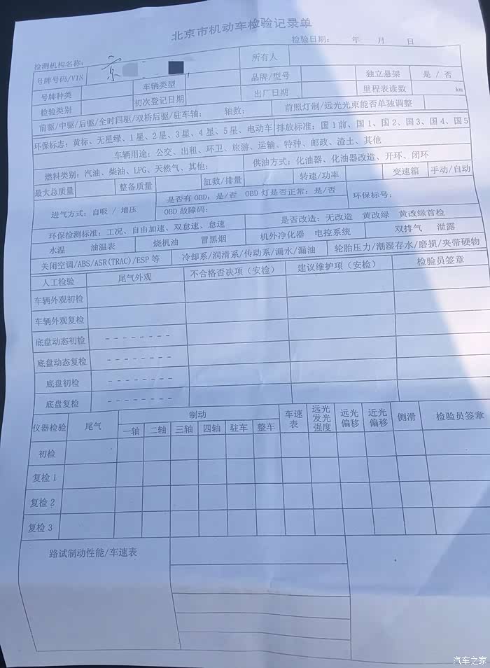 去了预约选定的检测场,排队等候,8点上班,早点去排在前面。在等候的同时,去窗口填写并取检测单子。当时是直接交行车本,里面的人把车牌号填好,自己写个电话号码就完成了。回车上等。