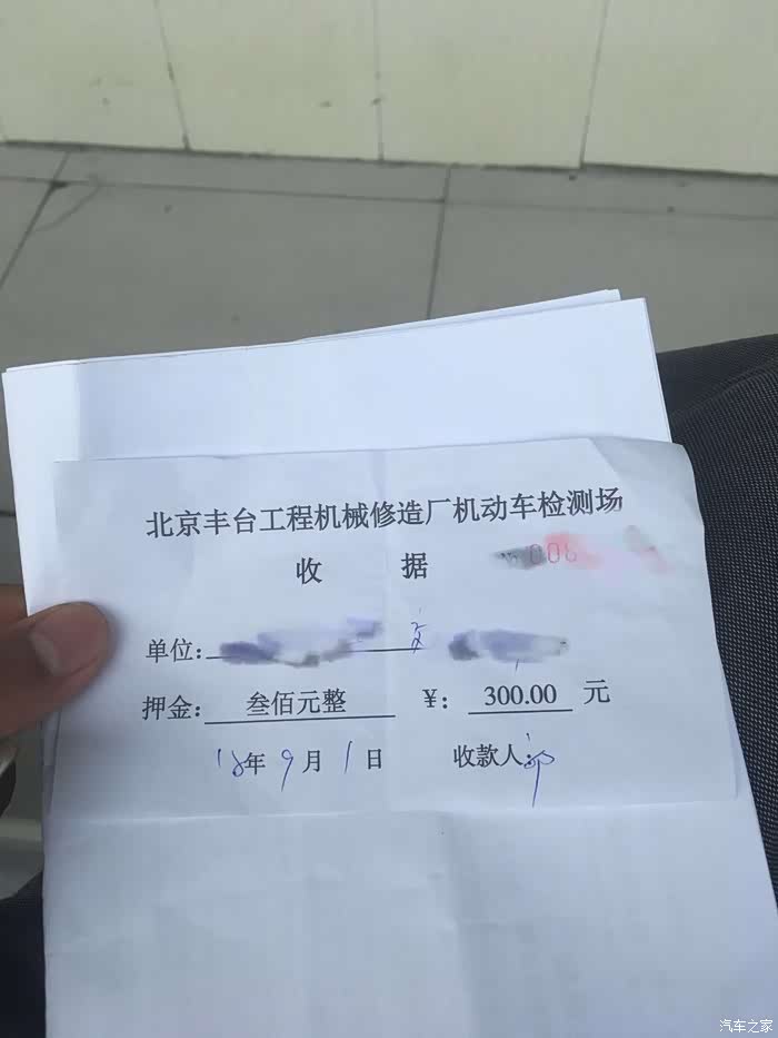 外观完了后,听安排停好车,拿着师傅盖好章的检测单去资费,押金300,同时,交钥匙、行车本、检测单。注意:收好押金条,后面要用!