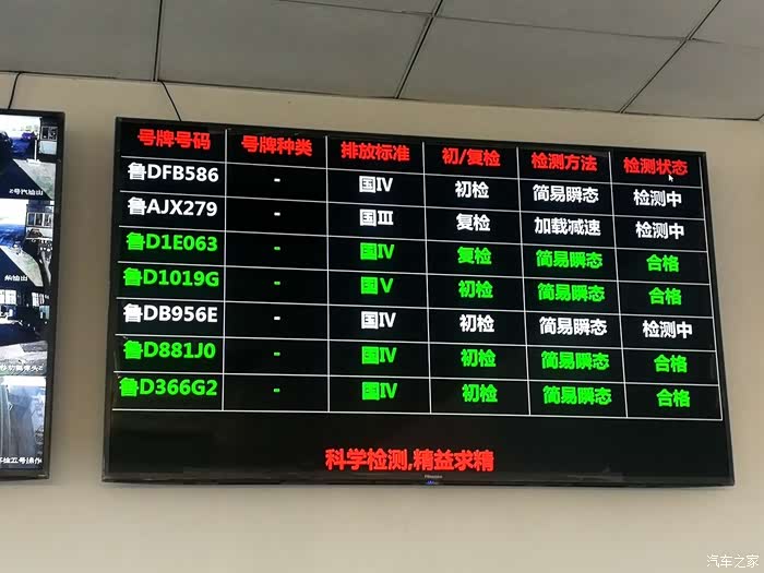 旁边的大屏幕上显示每辆车的检测状态及检验结果,非常的直观,让你第一时间了解自己爱车的检测动态。
