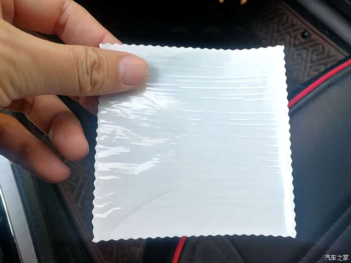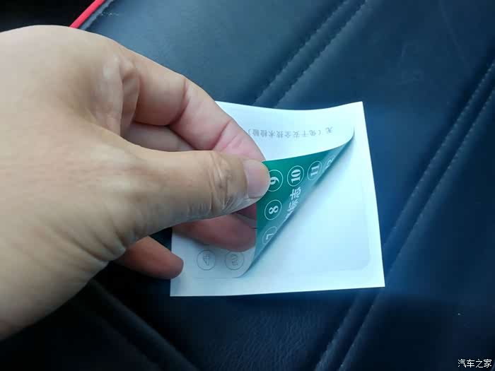 这是撕掉的新年检标志的正面(正面带有不干胶)。这时千万不要把年检标志直接贴到前挡风玻璃上,这样是很难撕掉的,车友一定要切记。