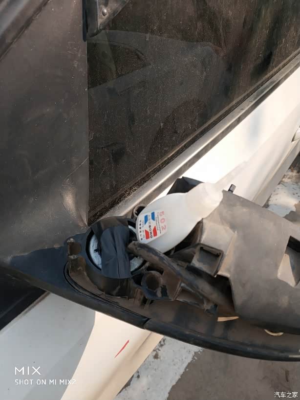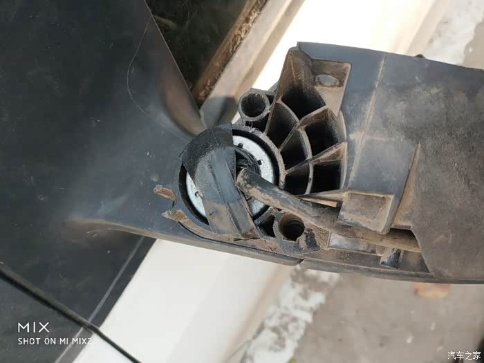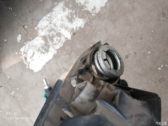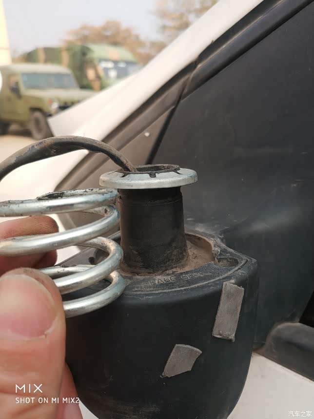 看到这片没,拧下来的模样,它卡在塑料柱上,压住弹簧,用弹簧的压力固定后视镜
