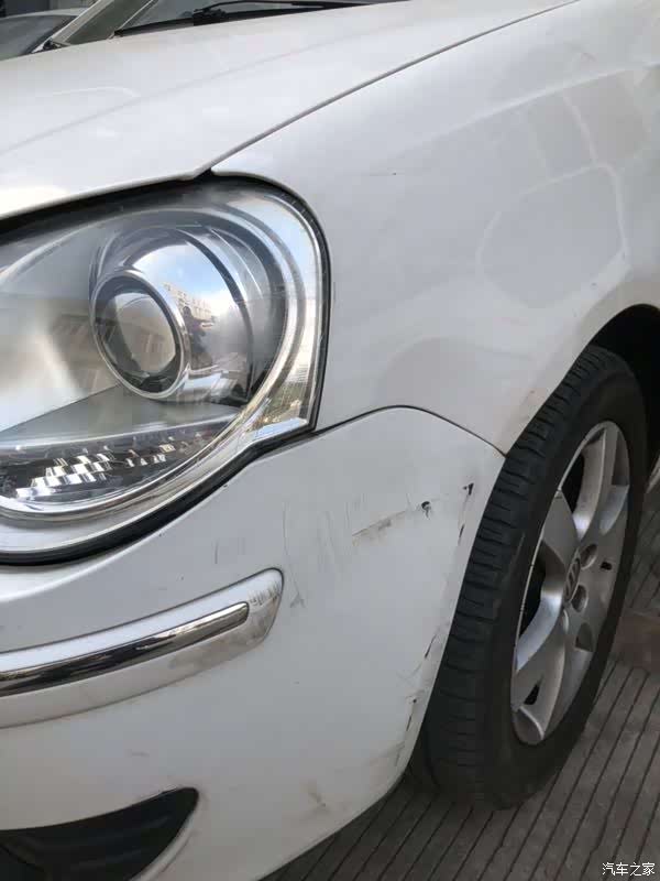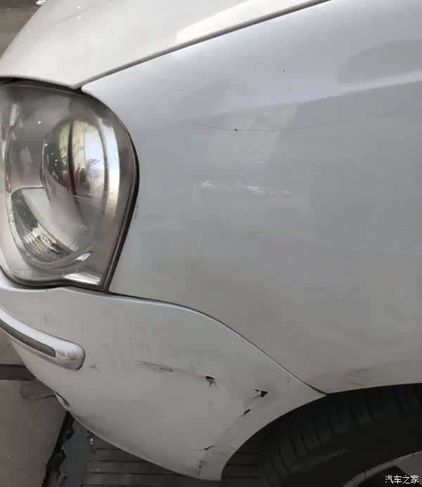 近看就清楚了,叶子板有点变形,保险杠有擦伤。