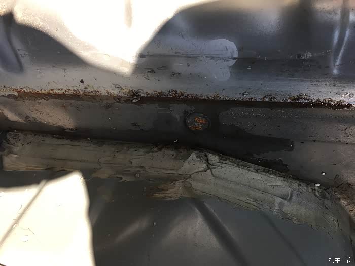 在车身喷水,发现了左边有渗水那就拆左边看看!生锈比右边还少点!但是在车身喷水,发现了左边有渗水!