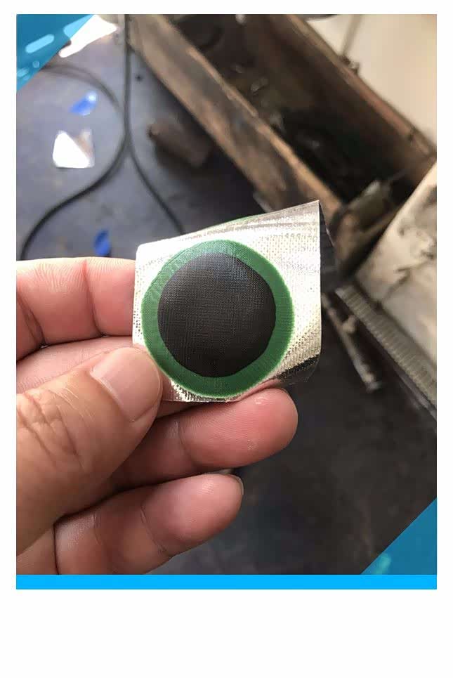 这就是冷补用的贴片了,趁着师傅等待的功夫拿过来拍了张照片,以前虽然也补过轮胎,但是从来没有注意过使用的材料,这是第一次详细的观察。