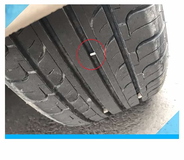 3、轮胎胎壁被扎要及时更换备胎,因为胎壁属于轮胎的最薄弱区,不像胎面内部有钢丝结构,胎壁的主要作用是散热和缓冲,一但胎壁被扎,整条轮胎要进行更换,不能修补。