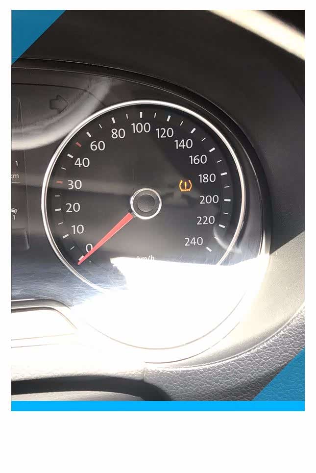 轮胎修补完成了,进入到车内,插入钥匙接通电源,仪表盘上的胎压警示标志还是亮着的,需要手动进行消除,消除后才能让胎压监测进入到正常的工作状态,不然轮胎如果没有修补好,或者还有其它胎压问题,我们很难通过胎压监测去辨别。