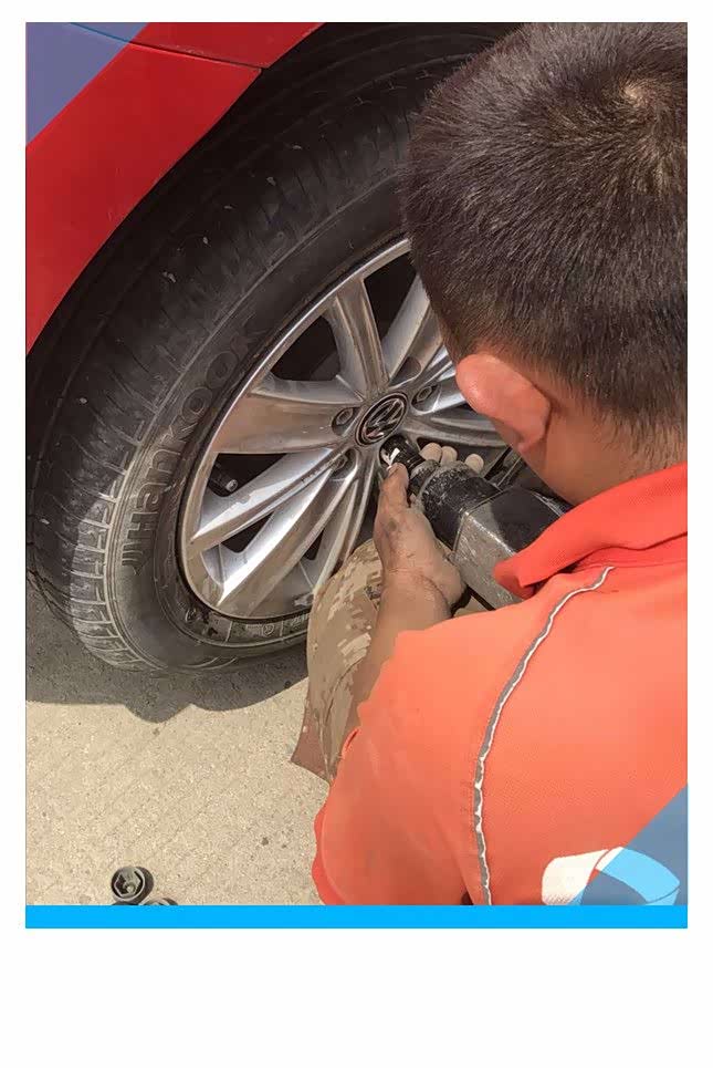 采用气动扳手顺时针拧紧固定螺丝,拧螺丝的时候对角紧固,每个螺丝分3~4次紧固到位,这样可以使每个螺丝都能均匀受力,轮胎安装的更加牢固。