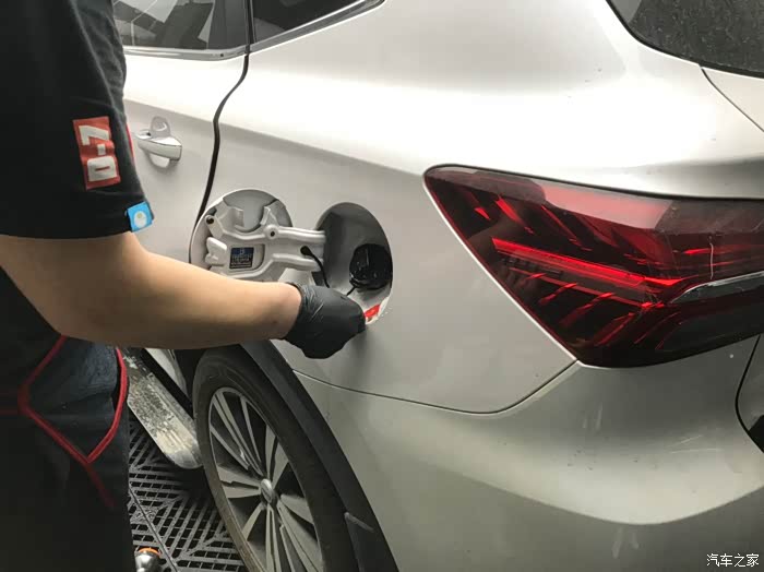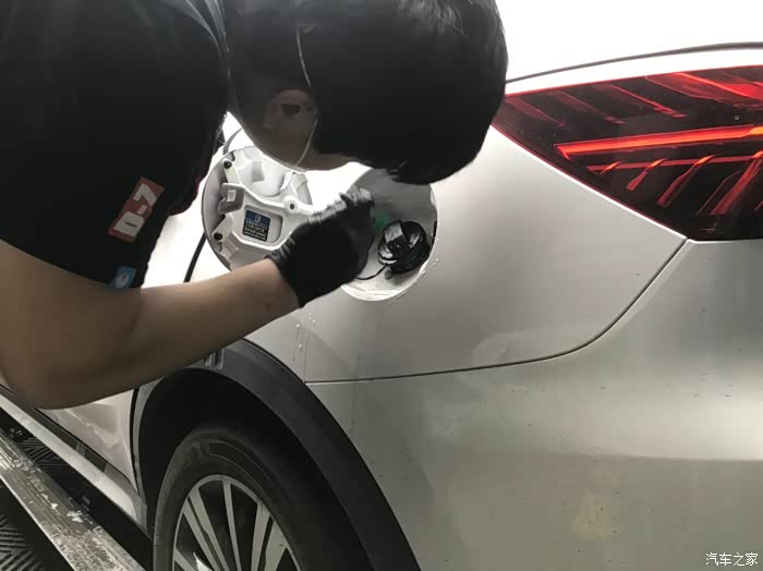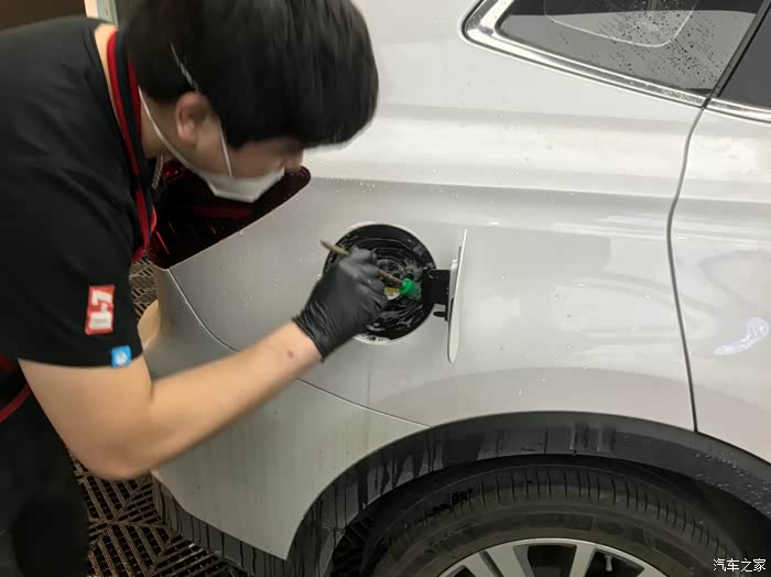 精洗先从细节刷开始,全车各个细节都要用刷子刷干净,细节刷也分步骤,我所看到的第一步先从五门的边缝以及油箱盖开始,