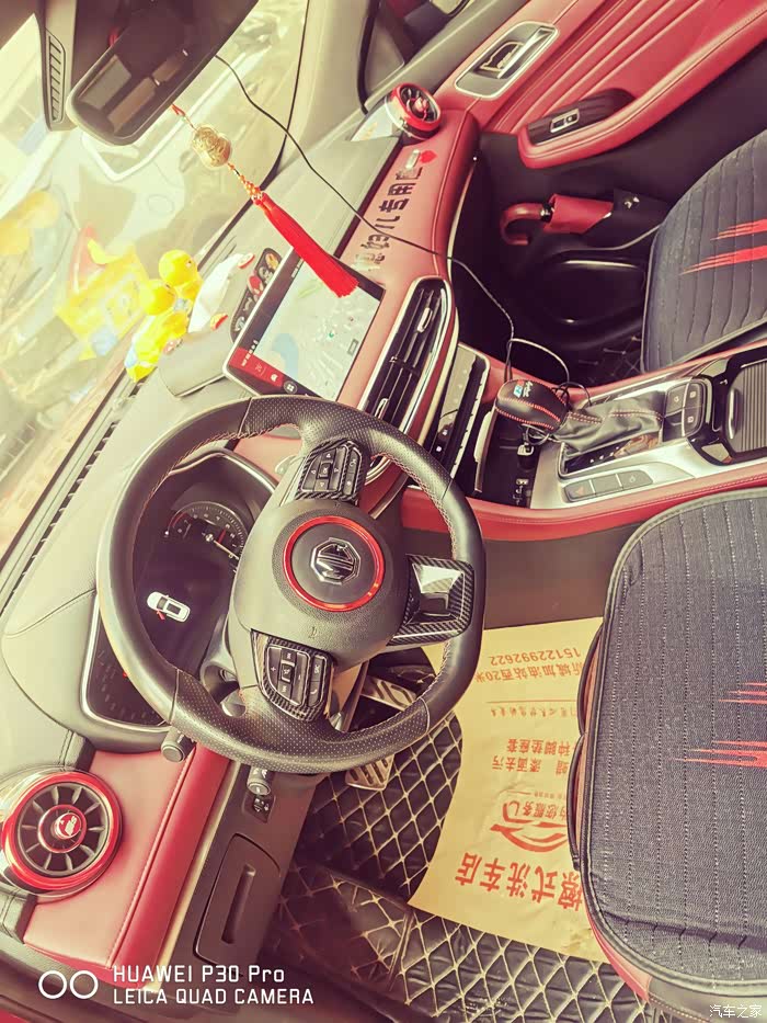 内饰的颜色和车外观的颜色一致,红色骚得一批!请忽略这个火箭的座垫!!