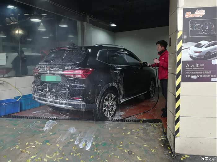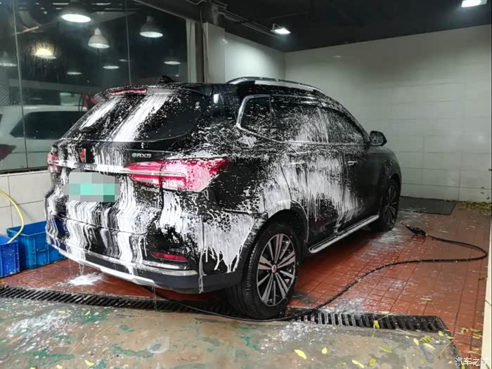 现在开始要用抹布擦拭老大的身躯了泡沫开始分解车身上的污垢。