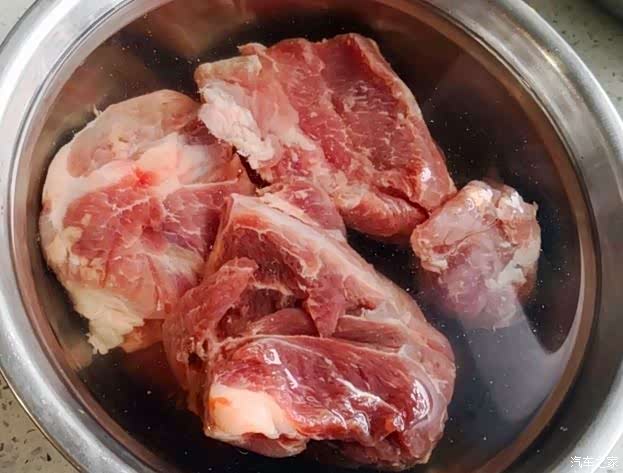这道菜主要的材料就是这两种了,架豆王和脊骨。最好是用排骨,冰箱里还有之前买的脊骨没吃完,这次就先用它了。骨头要先用凉水泡一泡,把血水泡出来。