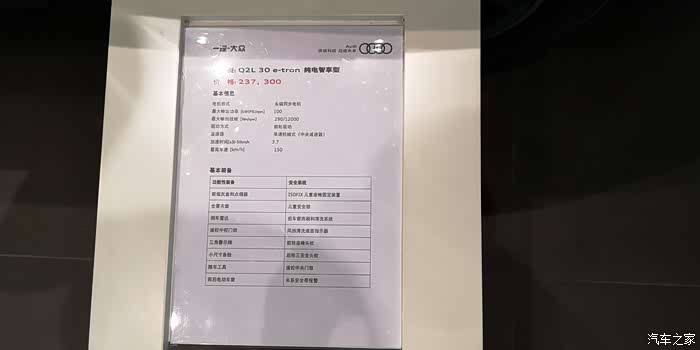 另外还有一辆纯电的小型SUV,Q2L e-tron. 这款续航只有265KM, 在市区内代步也够用了。