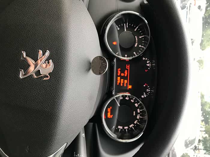 这个角度拍能看到方向盘后面有很多拨杆,挺吓唬人的。因为一些功能按键不在方向盘上,所以喇叭做的比较靠近手边,伸下拇指就能按到,比较方便,但不灵敏好像是通病。