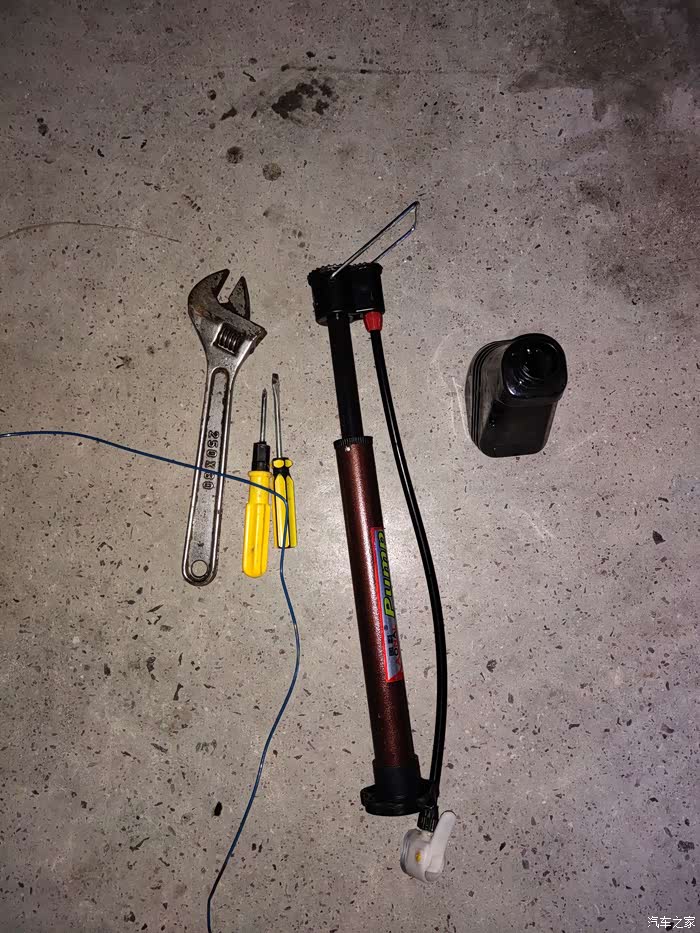本次的工具,用到的,打气筒(后来管子拔出来对接出气口)也无法通开。螺丝刀(副驾化妆区螺丝)、水壶一个(从天窗排水口倒水)、那个电线没用,因为我查了半天是排水管没用堵,是叶子板那个排水口嘟起来。扳手(卸下电瓶,怕不小心弄掉气囊,炸到自己