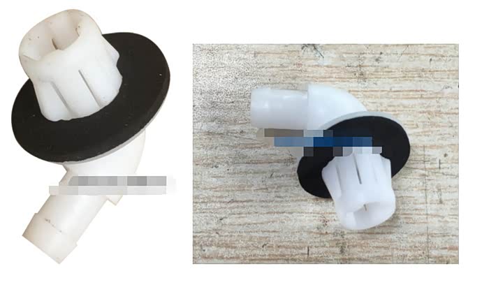 这个从网上搜所的,一个和天窗的排水口链接的,一个和副驾叶子板链接。上图中黑色的水管就是和这两段链接的,全程盲操作,手摸到管子直接插到上面了。我的是气人,全程没有堵住,就是叶子板这个接口堵起来,我用软吸管好不容易通了,不然上面所有做的都没有用了。