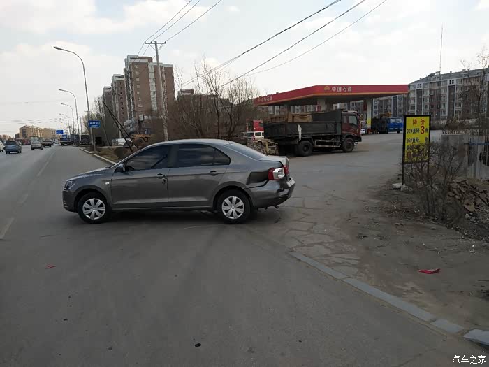 大众捷达,我都纳闷怎么会那么大力,把它撞到马路对面还横过来了