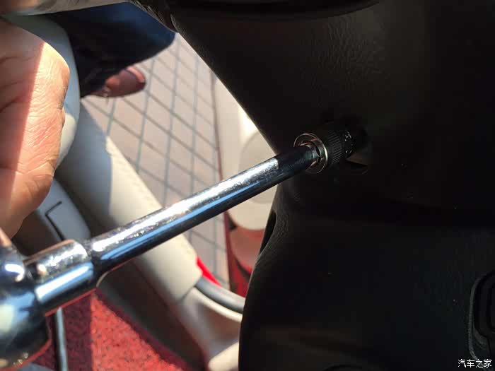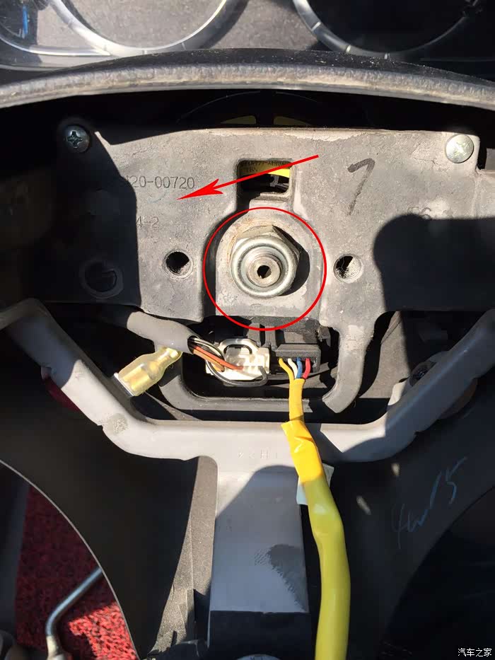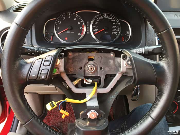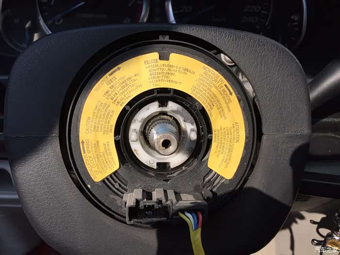 用一张之前的照片 拔方向盘的时候是有技巧的,你硬拔是很难拔出来的,有一个好方法就是,像开车一样 左手握住9点钟方向,右手握住3点钟方向,前后晃几下,这样很容易就下来了