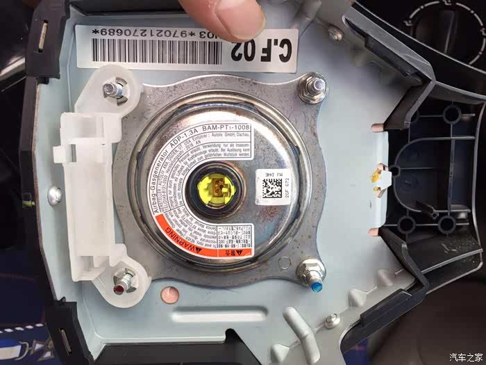 气囊拿下来背面的样子,这还是4S店召回换的气囊