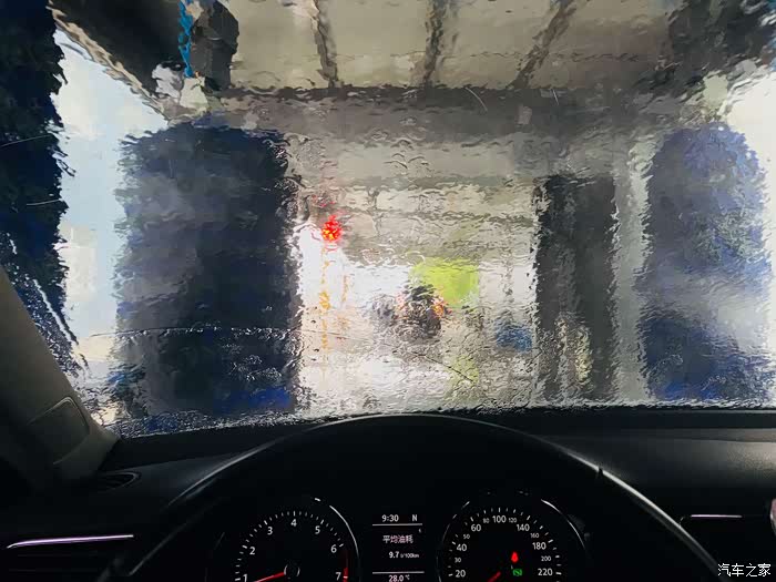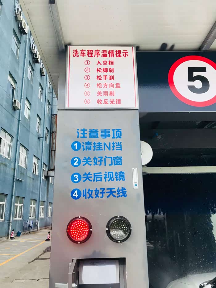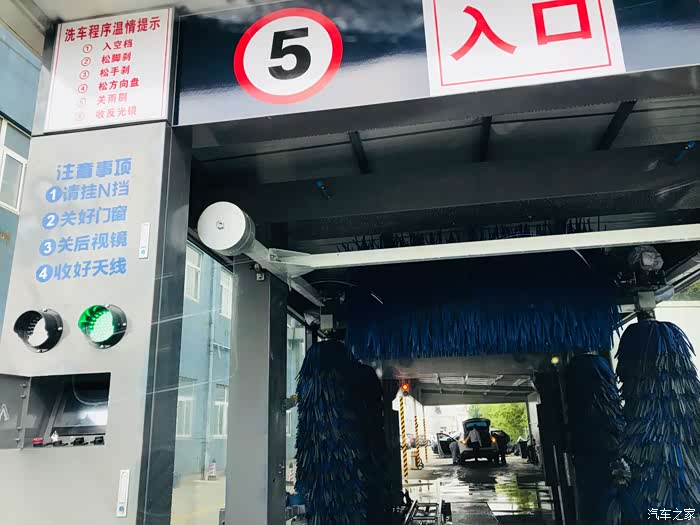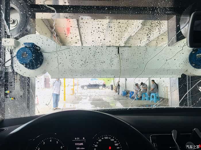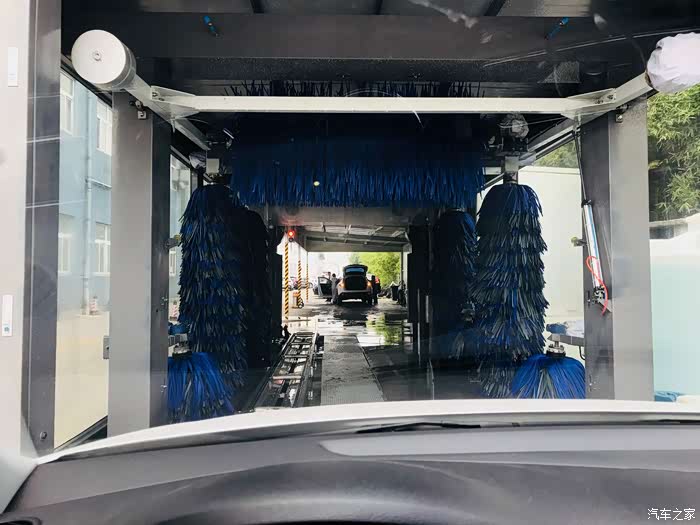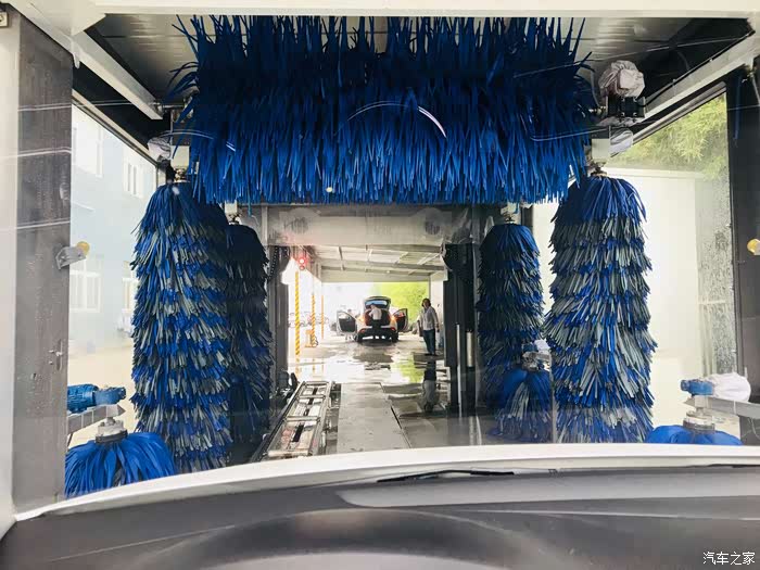 这是在喷洗车液,洗车机上的工序就这样结束了。