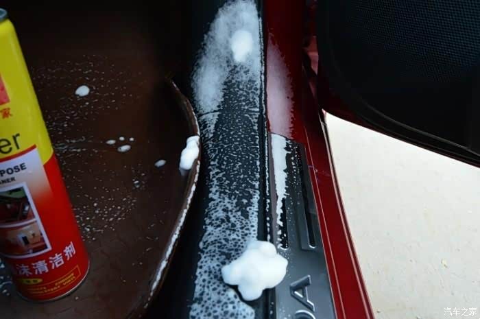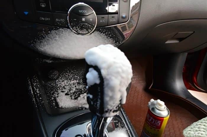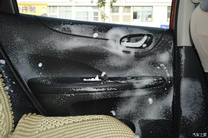 泡沫清洗剂首先就是用泡沫剂把整个车内先喷一遍。