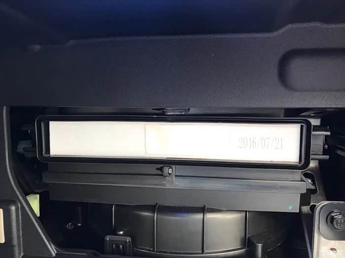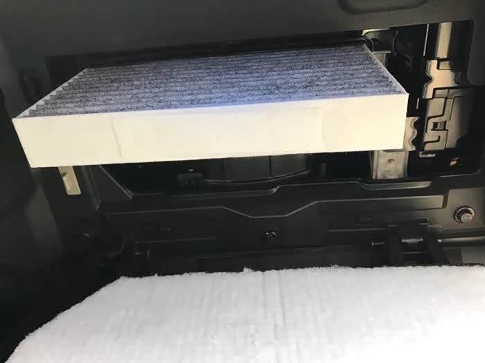 空调滤芯位于手套箱后侧。