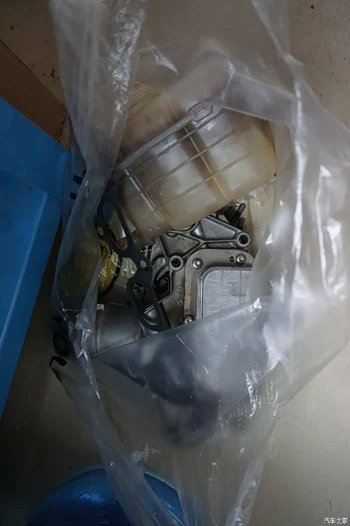 国庆长假期间,无意识的常规检查,发现问题挺严重得。以上是采购的相关配件(机油散热器总成,膨胀水壶,防冻液及一堆密封件)